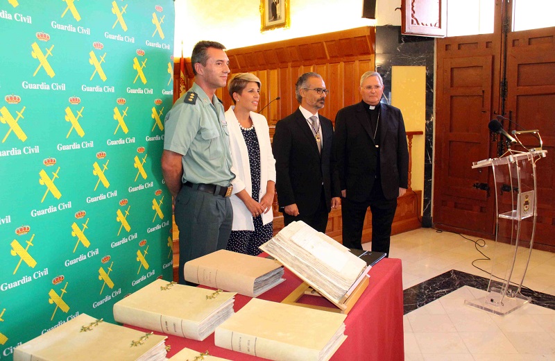 La consejera y portavoz del Gobierno asiste a la entrega de diez tomos de documentación histórica de los siglos XVI al XX que han sido recuperados por la Guardia Civil con la colaboración de Cultura