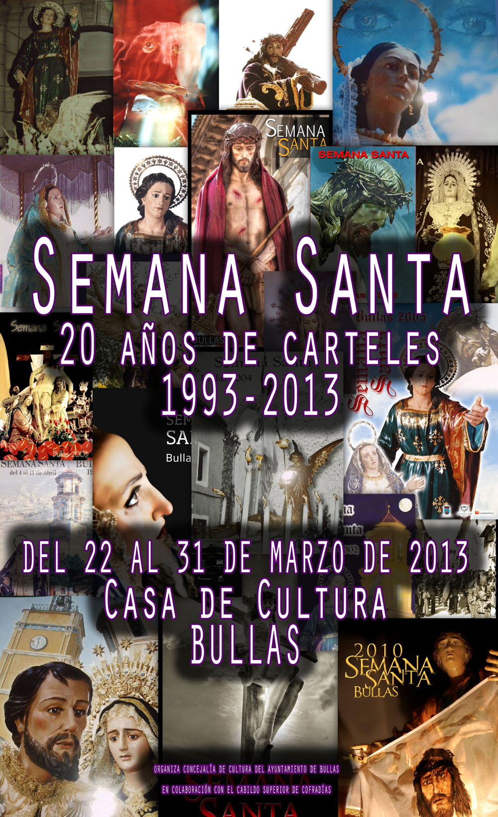 La exposición “20 años de carteles de la Semana Santa de Bullas 1993- 2013”, permanece abierta en la localidad vinícola. En ella se puede apreciar la evolución de este festejo en los últimos 20 años. También están expuestos los trabajos que muchos niños han realizado en los centros escolares de Bullas ( Artero, Amor de Dios, Castellar y Ródenas), como son los tronos más emblemáticos y nazarenos así como los dibujos y poesías organizados por el Cabildo Superior de Cofradías de Bullas.