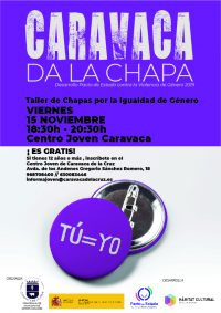 Las actividades del ‘Día Internacional contra la Violencia de Género’ darán comienzo con el taller dirigido a la población juvenil ‘Caravaca da la chapa’. La actividad, para la que se encuentra abierto el plazo de inscripción, se celebra viernes 15 de noviembre, de 18.30 a 20.30 horas, en el Centro Joven.A través de las concejalías de Igualdad de Oportunidades y Juventud y dentro de las medidas contenidas en el Pacto de Estado de la Violencia de Género, se ha programado este taller práctico dirigido a los adolescentes, en el que realizarán actividades de sensibilización de una forma motivadora para ellos. Los participantes contarán con numerosos materiales para la creación de chapas e imanes, con consignas, lemas e imágenes a favor de la igualdad y los buenos tratos. Estas chapas creadas por los jóvenes se repartirán entre la población el 25 de noviembre.