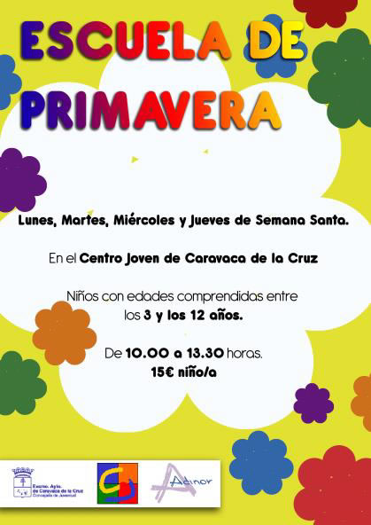 El curso está destinado para niños entre 3 y 12 años y se impartirá los días 25,26, 27 y 28 de marzo en horario de 10:00 a 13:30 horas en el Centro Joven de Caravaca al precio de 15 euros.