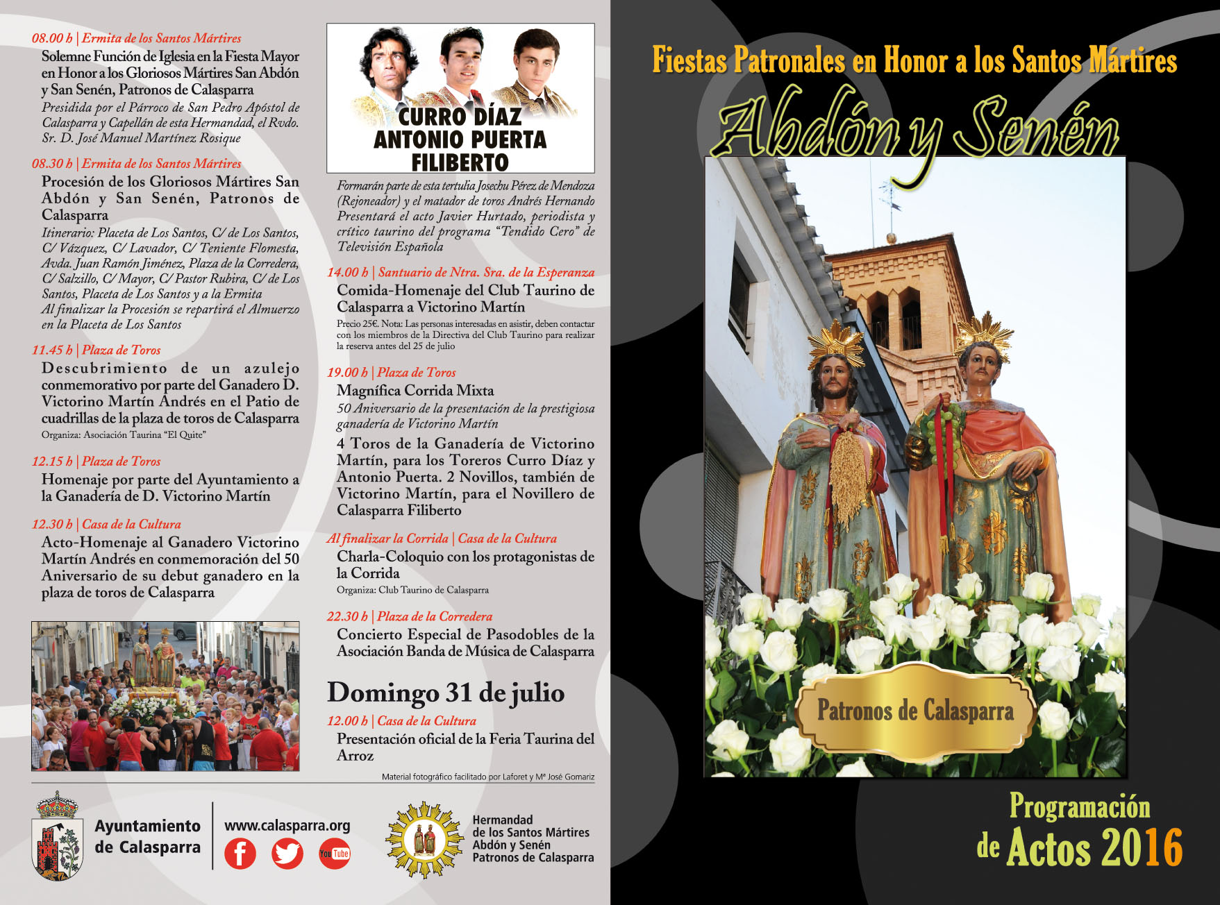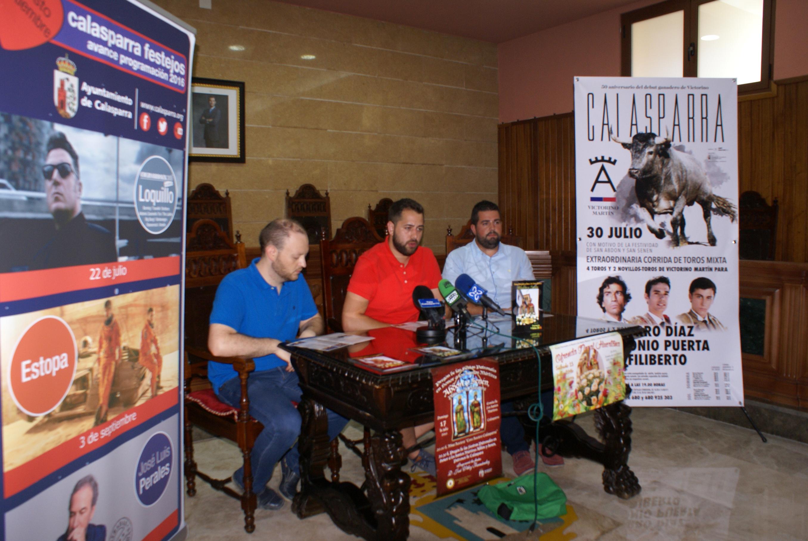 julio, Calasparra celebra la festividad de sus Patronos San Abdón y San Senén, con un amplio programa de actividades para todos los públicos, que han sido presentadas por parte de los ediles de Festejos y Juventud, Jordi Arce y Antonio José Merino y el presidente de la Hermandad de los Santos Mártires, Juan Antonio Juarez, que han destacado la implicación y colaboración de las Peñas, que viven y participan de estas Fiestas de una forma especial.