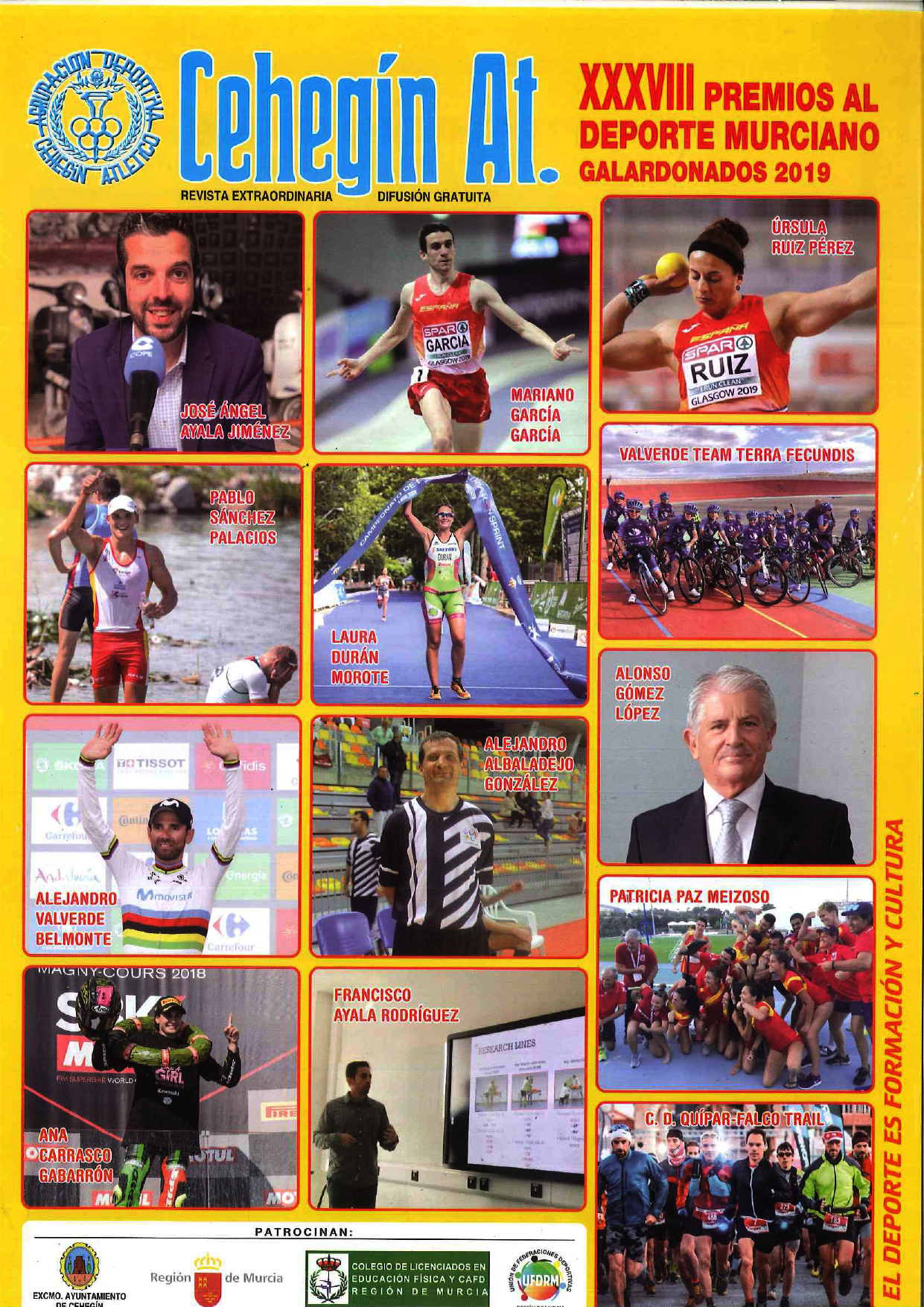 El Centro Cultural “Adolfo Suárez” de Cehegín acoge mañana, viernes 18 de octubre a partir de las 21:00 horas, la gala de entrega de los XXXVIII Premios al Deporte Murciano, otorgados por la Asociación Deportiva Cehegín Atlético con el patrocinio de la Comunidad Autónoma de la Región de Murcia y el Ayuntamiento de Cehegín y la colaboración del Colegio de Licenciadosen Educación Física de la Región de Murcia.