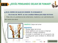 Según comunican desde el centro, el objetivo de los talleres es dejar de fumar, y para participar en los mismos hay que cumplir una serie de requisitos, como disponer de un teléfono móvil con acceso a internet, entender y hablar la lengua castellana y acceder a participar en un proyecto de investigación para analizar la utilidad del taller.