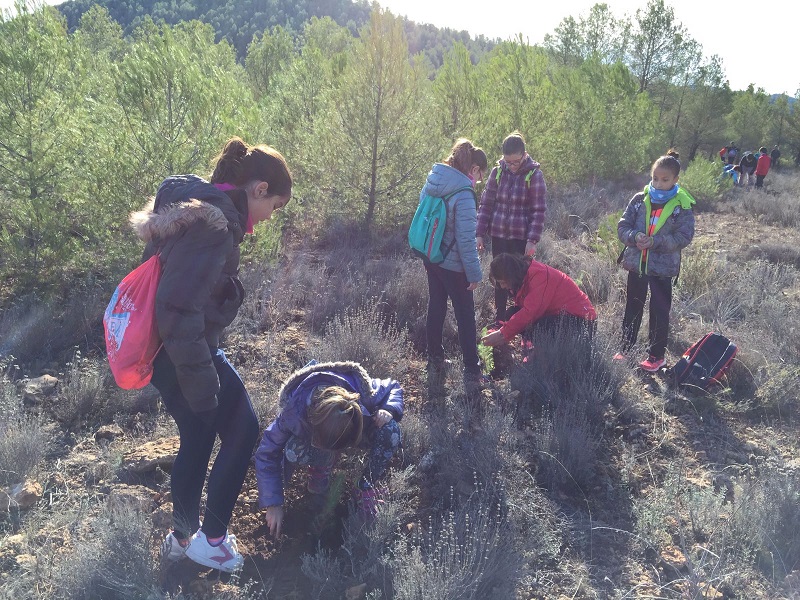 Los alumnos del CEIP Ciudad de Begastri, pertenecientes al Grupo Escolar para la Protección de la Naturaleza de Cehegín (Gepnace), en colaboración con la Concejalía de Medio Ambiente, dirigida por María José Martínez, han realizado una actividad de reforestación en el Monte 35, Las Rueldas, en una parcela en las inmediaciones de la Vía Verde.