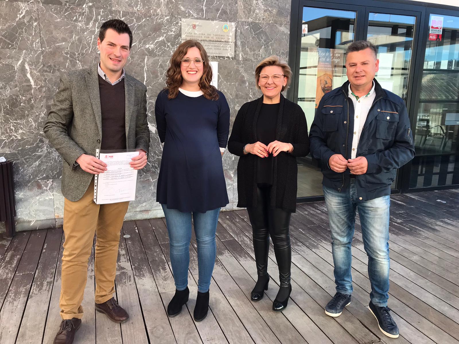 El portavoz del Grupo Municipal Socialista en el Ayuntamiento de Cehegín, José Rafael Rocamora, acompañado de varios miembros de su grupo, ha comparecido ante los medios para dar a conocer la solicitud que han realizado para la convocatoria de un Pleno Extraordinario.