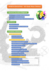 De este modo, la oferta educativa del IES GINÉS PÉREZ CHIRINOS, se reafirma como la más amplia de todo el noroeste murciano, con siete familias profesionales y catorce ciclos formativos. En correspondencia con su función pública, siempre se ha caracterizado por ofrecer una respuesta educativa ajustada a las necesidades, intereses y características socioeconómicas del municipio de Caravaca de la Cruz y alrededores, siempre innovando en las metodologías didácticas puestas en práctica e incorporando nuevas formas de enseñanza, como es el caso de la modalidad dual de la Formación Profesional, ya presente en el Grado Medio de Calzado y Complementos de Moda (único en la Región de Murcia e iniciado en este centro en el curso 2017/2018) y, ahora, en el Ciclo Formativo de Grado Superior de Enseñanza y Animación Sociodeportiva. La modalidad dual de estos ciclos ofrece la posibilidad a los estudiantes de combinar los procesos de enseñanza y aprendizaje en la empresa y en el instituto, realizándose en régimen de alternancia, con un número de horas o días de estancia de duración variable entre el centro de trabajo y en el centro educativo y con la posibilidad de recibir una remuneración.