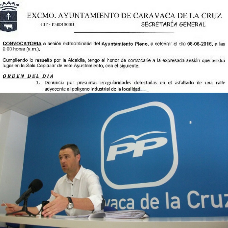 El portavoz del Grupo Popular en el Ayuntamiento de Caravaca, José Francisco García, ha lamentado “la falta de transparencia y la opacidad del equipo de Gobierno” al convocar el Pleno extraordinario solicitado por el PP para abordar el asunto de la denuncia de la calle del polígono de Cavila un día laborable, el miércoles 8 de junio, a las 09:00 horas. “Esto en la segunda solicitud, porque la primera petición de Pleno extraordinario nos fue denegada”, ha añadido.