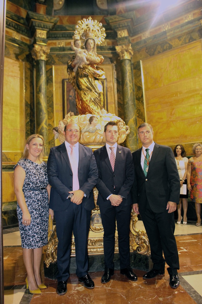 El presidente de la Comunidad, Pedro Antonio Sánchez, asistió hoy a la misa en honor a la Virgen de las Maravillas, patrona de Cehegín. El jefe del Ejecutivo regional señaló antes del inicio de la eucarística, oficiada por el obispo de la Diócesis de Cartagena, José Manuel Lorca Planes, que «éste es un pueblo que merece la pena vivir, disfrutar y compartir porque ha sabido conservar su esencia y sus raíces sin renunciar a conquistar otros ámbitos de futuro y generar prosperidad y oportunidades para su gente».