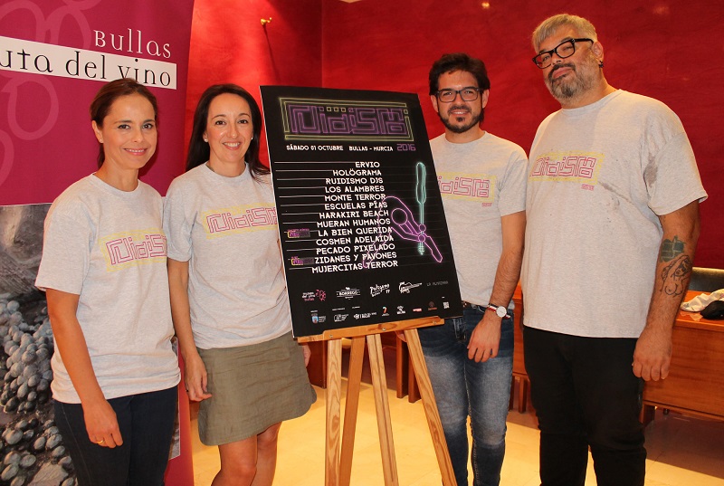 Esta mañana la Alcaldesa, María Dolores Muñoz y el Concejal de Festejos, Antonio José Espín, junto con Luismi Fernanz de la organización Bullas Noise Pop y la Presidenta de la Asociación Ruta del Vino, Toñi Fernández, han presentado el cartel del Ruidismo que presenta este año importantes novedades.