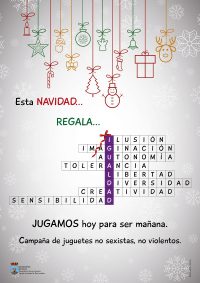 Con el lema «Esta Navidad regala Igualdad. Jugamos hoy para ser mañana» se pretende llegar a los vecinos y concienciar de que se puede regalar ilusión con imaginación y creatividad, fomentando la tolerancia, la libertad así como la diversidad.