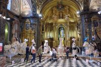 La iglesia de San José del antiguo convento de las Madres Carmelitas, situada en la calle Mayor, acoge este año la exposición de los mantos que los Caballos del Vino lucieron el pasado 2 de mayo. En la muestra se pueden admirar al detalle los trabajos de peñas caballistas del primer y segundo bloque del Concurso de Enjaezamiento.