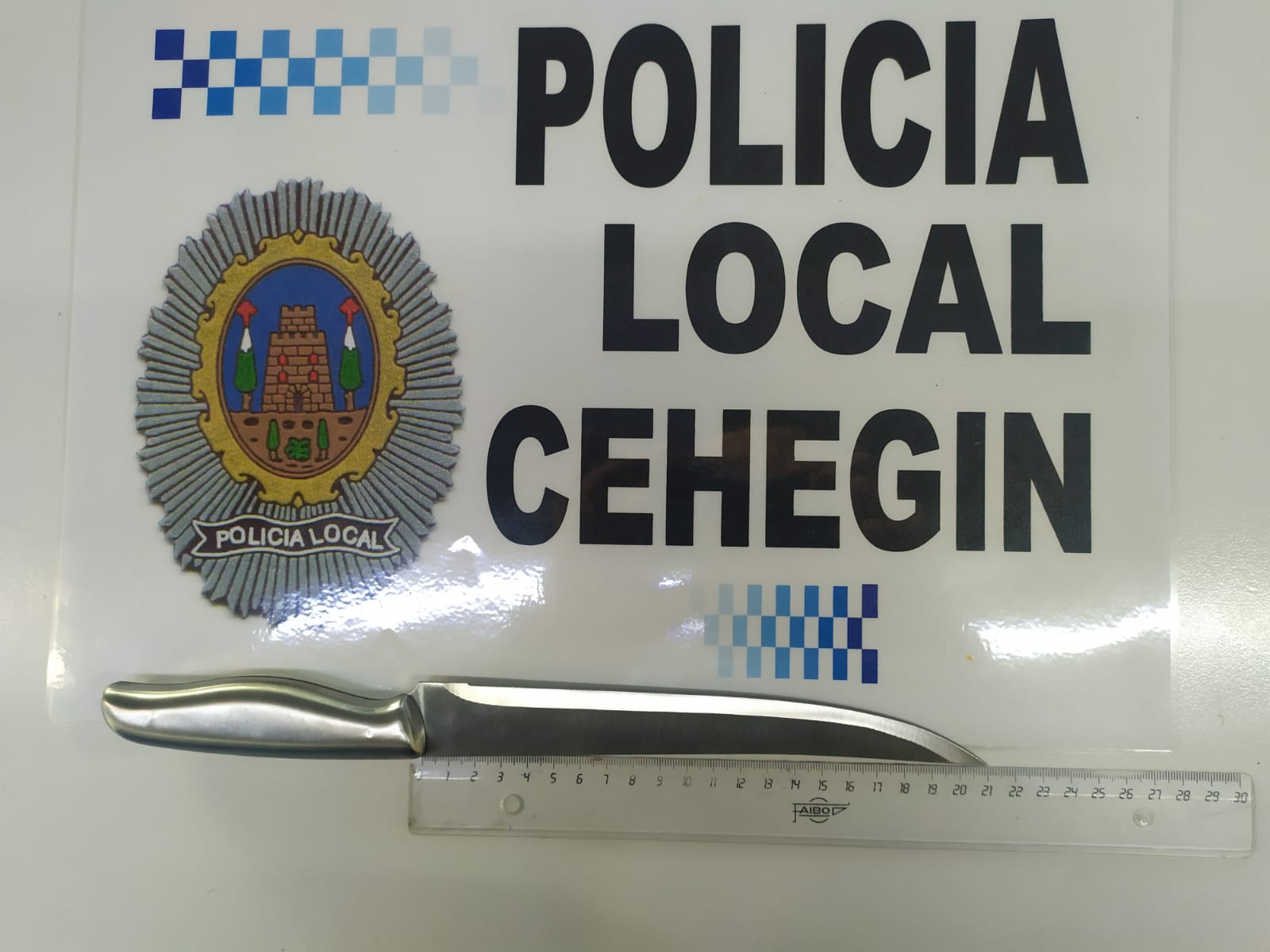 Según fuentes de la Concejalía de Policía y Seguridad Ciudadana, dirigida por Jerónimo Moya, la tarde del pasado martes 14 de enero, agentes de la Policía Local de Cehegín, recibieron una llamada alertando de la presencia de un individuo que esgrimía un cuchillo de grandes dimensiones y que se encontraba amenazando a otros, en la céntrica Plaza del Alpargatero de la localidad.