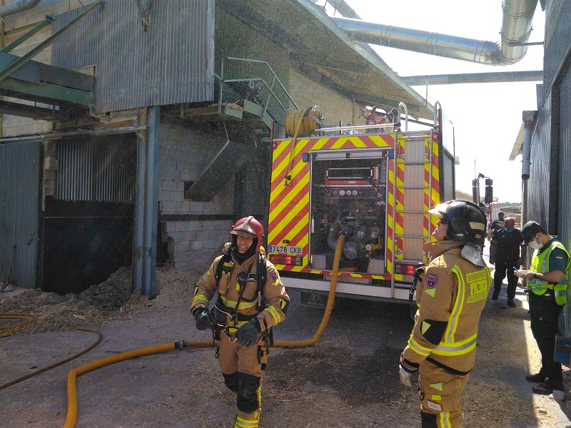 Informan que el incendio se ha declarado en un silo de serrín y un herido con quemaduras.