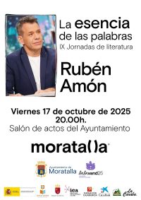 El Ayuntamiento de Moratalla, a través de la concejalía de Cultura, presenta en las IX Jornadas de Literatura «La Esencia de las Palabras», a Rubén Amón, éste viernes 17 de octubre a las 20h. en el Salón de Actos del Ayuntamiento de Moratalla.