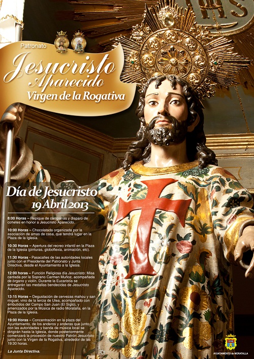 Se conmemora el 520 aniversario del milagroso Aparecimiento de Jesucristo en Moratalla. Según cuenta la historia haya por el 19 de abril de 1493, venía a Moratalla un labrador manco llamado José Ruiz Sánchez, con su pollina cargada de leña y una talega de sal, procedente de las Salinas del Zacatín. Al llegar a la altura donde está situada actualmente la Casa de Cristo, vio un resplandor y dentro de este la imagen de Jesucristo con una gran cruz roja en el pecho y un báculo en la mano rematado en una cruz.