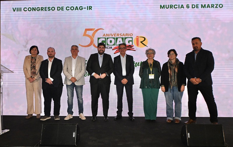 El VIII Congreso ordinario de COAG-IR Región de Murcia analizó los asuntos más relevantes actualmente para el sector agrario, como la futura PAC. Al respecto, López Miras recordó el compromiso firmado con COAG en el mes de septiembre 2025, junto al resto de organizaciones agrarias y cooperativas, en el que se reivindicaba conjuntamente una financiación suficiente de la PAC, adaptada a la inflación y a las características de la Región de Murcia.