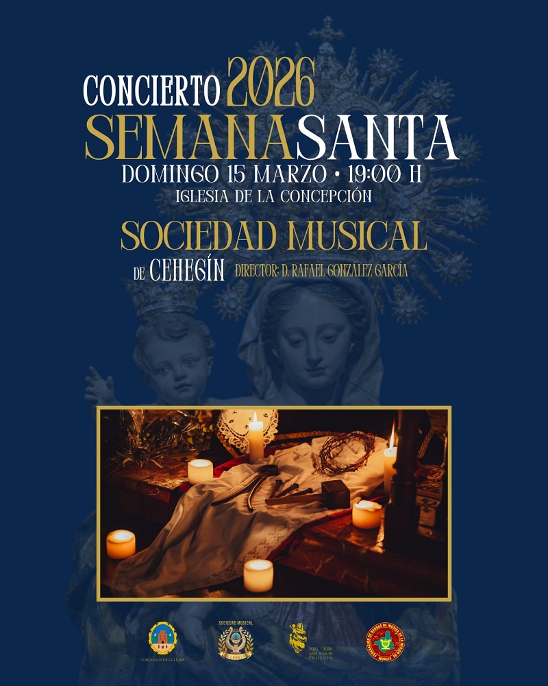 Cehegín se prepara para disfrutar de un gran evento musical en el marco de la Semana Santa 2026. La Sociedad Musical de Cehegín ofrecerá un concierto el domingo 15 de marzo a las 19:00 horas en la Iglesia de la Concepción, bajo la dirección de Rafael González García.