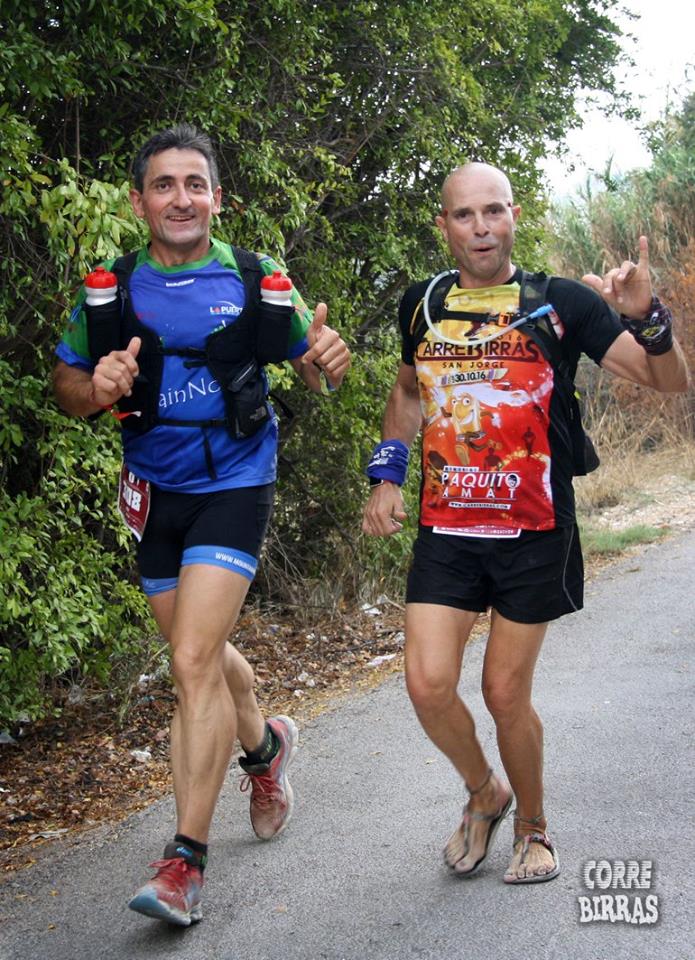 Ahora toca agradecer, algo que no me gusta pero me siento en la obligación de hacerlo. En primer lugar a mi Espe y mi Julia, son las mayores sufridoras de mis tonterías, su apoyo necesario e indiscutible hacen que cada día crezca como persona. A Ventura Guerrero por aguantar mis entrenos, que no los suyos cada vez que nos juntábamos, además del apoyo anímico y presencial que siempre ha prestado. A Bobi por los entrenos de la semana, a Juan Soria también por su apoyo logístico, a mi gente, a la gente del club, que sin quererlo me encontré más de 200 mensajes de wasap que fueron enviando durante todo el día dando apoyo y animando, sabiendo en todo momento por donde iba. A los que se desplazaron para verme, Jose, Laura, Adrián, Isa, Pascual, Manolo, Dani, etc. y como no, también a Adrián López Garrido, por hacer posible este reto y llevarme a cumplir uno de mis sueños en cada entreno que he realizado. Gracias.