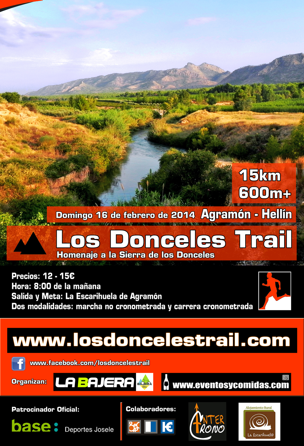 Y el domingo tenemos una prueba de montaña de Trail Running en Agramón, Hellín, donde se celebra la I Carrera “los donceles Trail” en la que se podrá disfrutar de dos modalidades, una con un recorrido de 15 km para marcha o senderista no cronometrada, y un desnivel positivo de 600 metros. Y otra de 15 km de carrera cronometrada también con el mismo desnivel y recorrido que la anterior, la primera saldrá a las 8 de la mañana y la segunda saldrá a las 9:30 horas desde la escarihuela de Agramón, recorrerán la Sierra de los donceles, que recordemos es la sierra que fue devastada por un incendio en el año 2012. Esta prueba está organizada por el Club Bajera Bike de Hellín.
