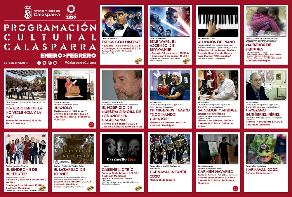 El cine de estreno será otro de los protagonistas con la proyección de la saga «Star Wars, el ascenso de Skywalker» (novena entrega) y la película de animación familiar “Espías con disfraz”. entre otras dentro de la programación cultural de invierno en Calasparra.