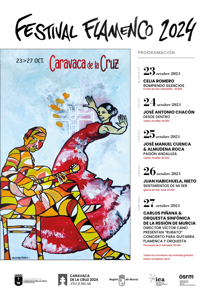 Caravaca de la Cruz celebra esta semana la primera edición de su festival de flamenco de la mano de consagrados cantantes, guitarristas y bailaores de este arte reconocido Patrimonio Cultural Inmaterial de la Humanidad. El evento cultural, organizado por el Ayuntamiento caravaqueño en el marco de la programación especial del Año Jubilar 2024, contará con cinco conciertos de acceso gratuito en diversos espacios monumentales de la localidad desde este miércoles, 23 de octubre, al próximo domingo, 27 octubre.